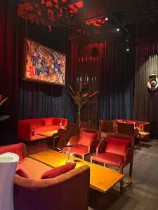 المكان ألوانه داكنة، فيه لمسة غموض، وموسيقى لاتينية ناعمة، يعني جو يخدم اللحظة بدون ما يسرقها.