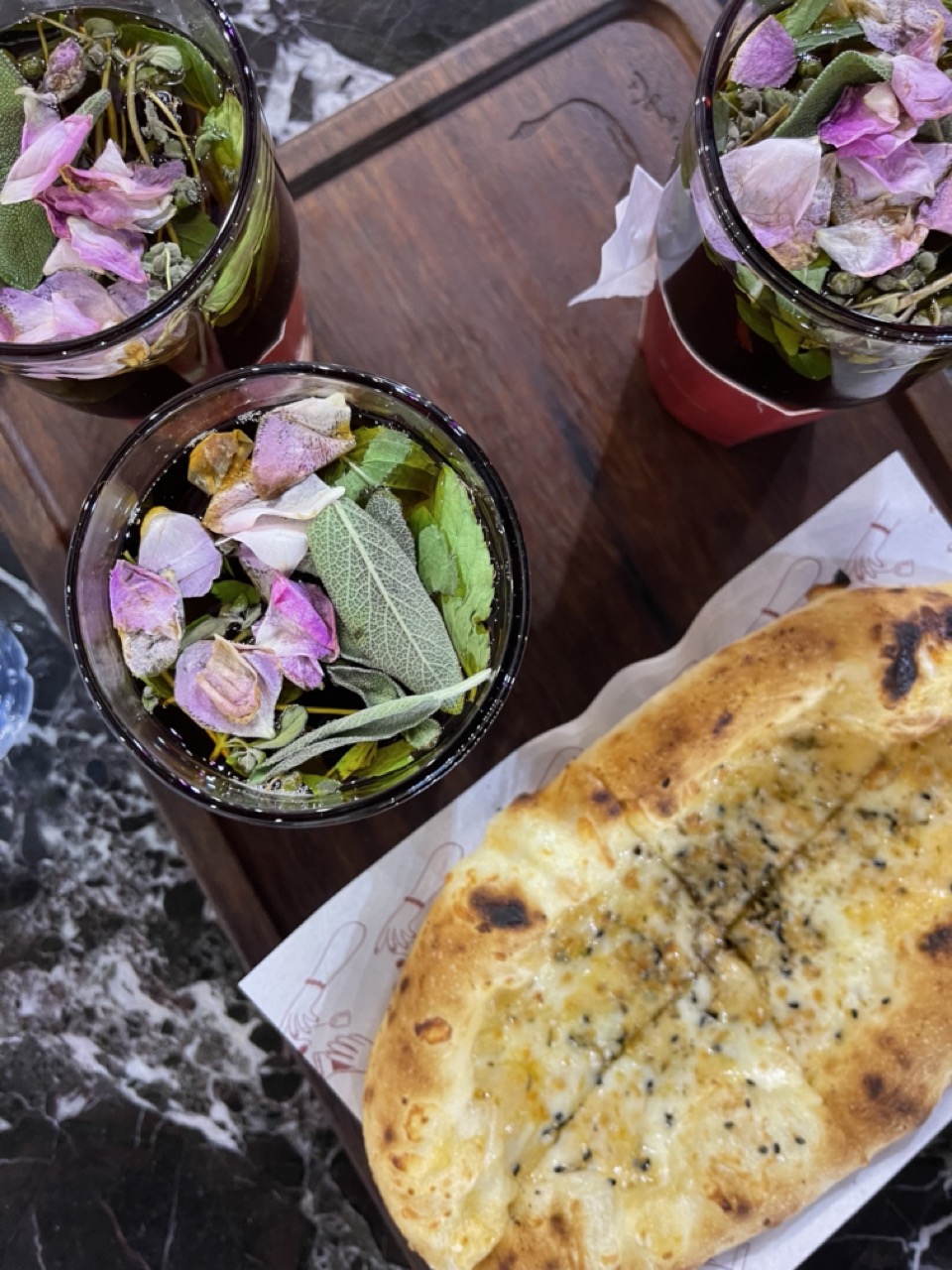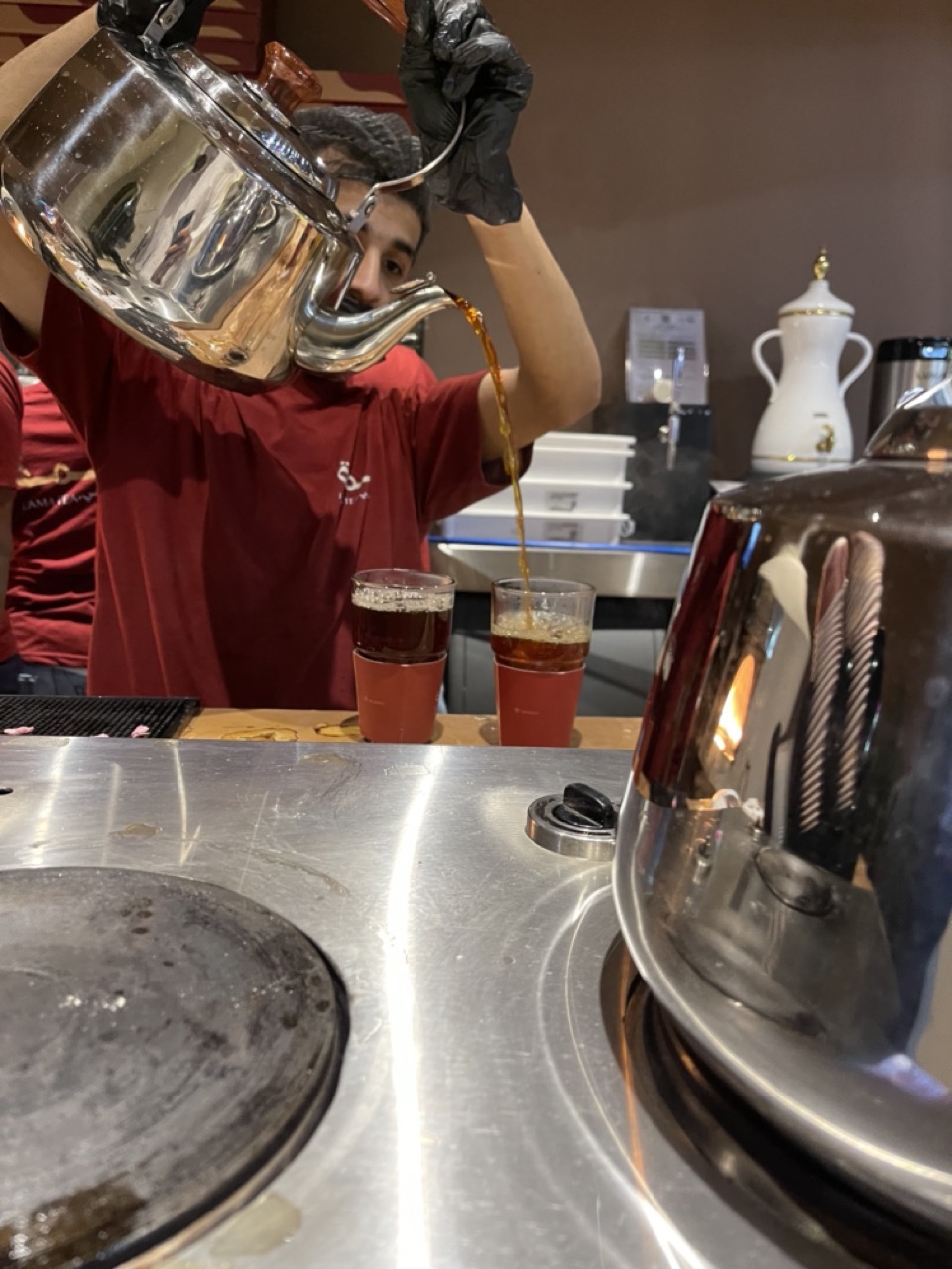 تجارب الزوار هذه هي اللي حمسّتنا أكثر! تجربة الشاي عندهم متكاملة. يتقدم في كؤوس شفافة (مثل ما تشوفون بالصور) عشان تستمتع بشكله ولونه. معاه نعناع وورود طايفية تطلق ريحة عطرية تاخذ العقل. والطعم؟ فعلاً، مثل ما وصفوه الزوار.