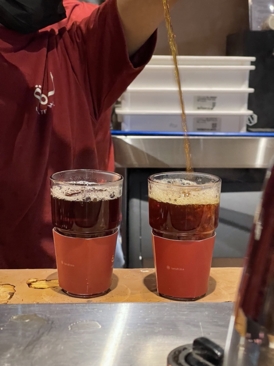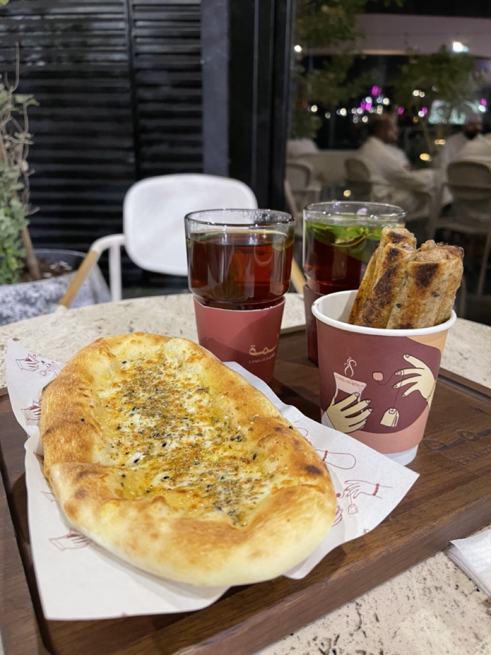 أول شيء يشدك في شاهي لمه هو الجو العام الهادي والمريح، اللي تحس فيه بذوق رفيع. الديكور أنيق وعصري، والجلسات الخارجية عندهم حكاية ثانية. خاصة مع النظام الرذاذي اللي يلطف الأجواء، والأضواء المتدلية اللي تعطي المكان سحرًا خاصًا في الليل.