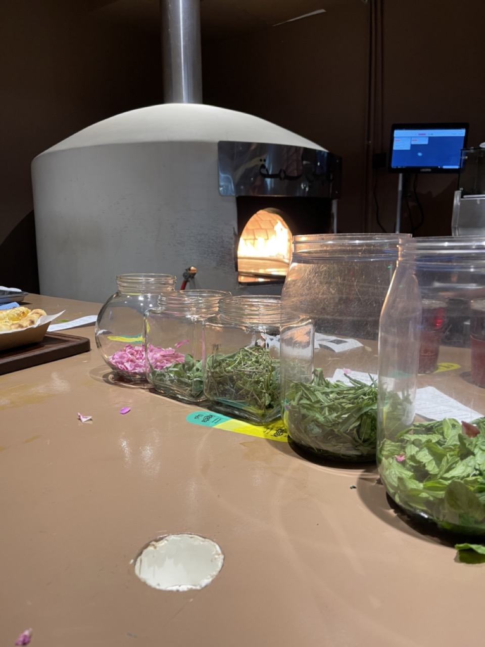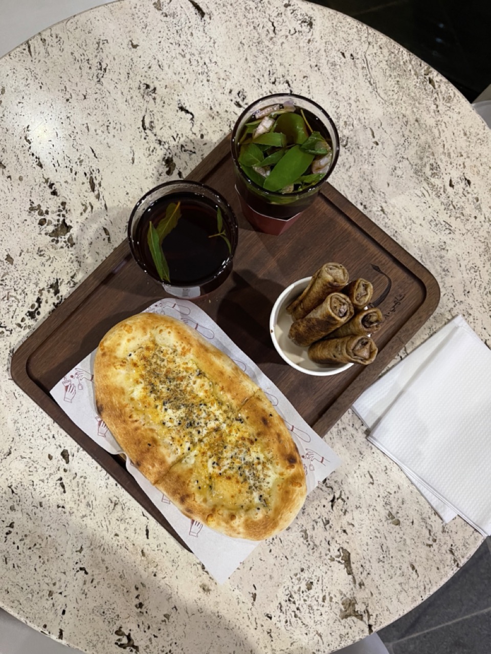 هذا هو السحر الثاني للمكان. عندهم فرن حجري يخبز الفطاير الطازجة قدام عينك. هذا الشيء مو بس يضمن لك النضارة، بل يعطيك شعور بالحرفية والاهتمام. فطيرة الأجبان مشهورة بعجنتها الذهبية الهشة وحشوتها الغنية. ولفائف المسخن كانت طبق مبتكر ولذيذ. كل فطيرة تحس إنها مباشرة من الفرن إلى طاولتك.